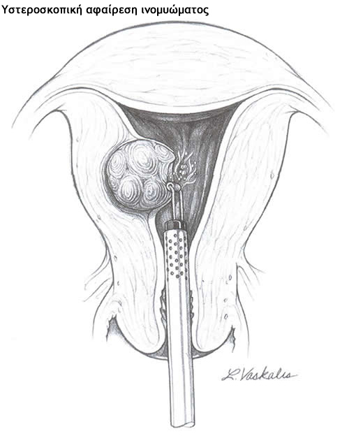 Τα υποβλεννογόνια ινομυωμάτα μπορούν να αφαιρεθούν υστεροσκοπικά με ακρίβεια και ασφάλεια. Αυτό πραγματοποιείται με ένα ειδικό επεμβατικό υστεροσκόπιο που χρησιμοποιεί ηλεκτρική ενέργεια για το κόψιμο και τον καυτηριασμό του ινομυώματος (όπως και στα κλασσικά χειρουργεία).